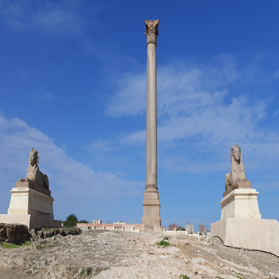 Then you will transfer to Pompey's Pillar pillar’s name given to a Roman triumphal column in Alexandria, Egypt Set up in honor of the Augustus Diocletian between 298-302 AD you can also see the ruins of an ancient temple The Serapeum of Alexandria was an ancient Greek temple built by Ptolemy III Euergetes (reigned 246–222 BCE) and dedicated to Serapis.
